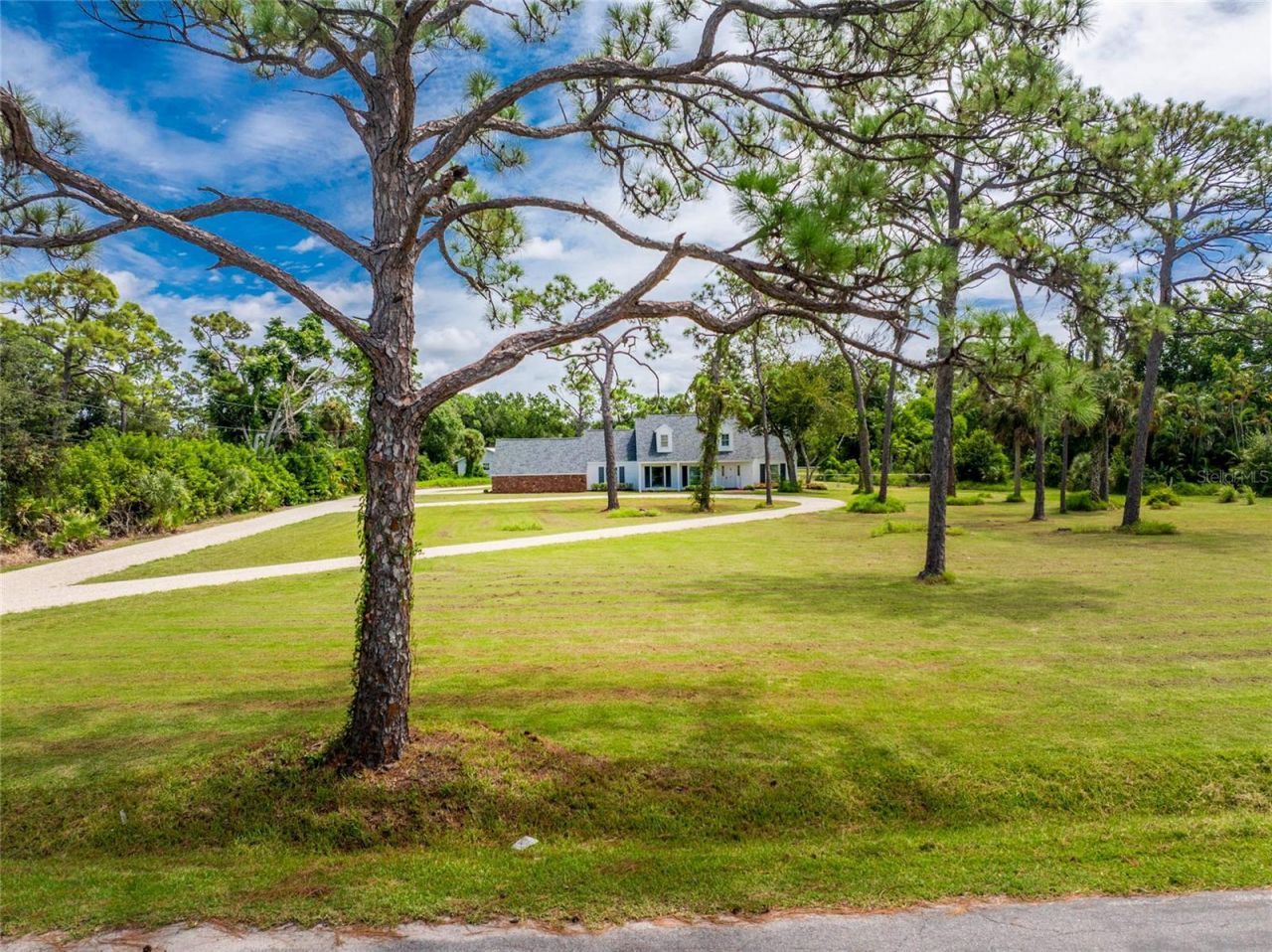 This could be the unique estate home you've been searching for! If you yearn for something different, then take a look at this classic-style 4 bedroom/ 2.5 bath two story home, situated on 1.67 acres in North Englewood. This custom built home is situated well back from the street, with a circular drive entry. The front porch covers you while you enter into an actual foyer, complete with slate floor. Both formal living and dining rooms have decorative chair railing/crown moulding and laminate flooring. The kitchen has updated cabinetry w/pull out drawers, granite countertops and a breakfast bar, perfect for your morning coffee. Appliances include: WOLF gas range, Frigidaire built in double oven, LG French door refrigerator and Kitchen Aid Dishwasher. The adjoining family room has a wood burning fireplace, great for ambiance or to actually warm up the room on those occasional cool evenings. The primary bedroom is thoughtfully located on the first level of the house, and features a large walk in closet, parquet flooring and ensuite primary bath, with completely updated granite-top vanity, lighting, shower enclosure w/seat & safety bars, and tiled flooring. There's a good-sized utility area, with washer & dryer tucked away behind closet doors, and separate half bath located in the same area. Upstairs you'll find three spacious guest bedrooms, all with carpeted flooring and a huge amount of closet space. The Guest bath has a combo tub/shower w/door, tiled flooring, & its own water heater. Oversized two car side entry garage has room enough for two cars plus all your garden tools! Huge tiled lanai is the perfect place to relax at the end of the day, or maybe for morning coffee! Large brick patio just off the Lanai would be the perfect place to add an outdoor kitchen. Zoned central heat/air systems for upstairs/downstairs were replaced in 2016 and 2019. Shingle Roof was replaced in 2022. Fenced back yard keeps the kiddos or the pets safe and contained. There's no pesky homeowner association telling you what you can and cannot do, either! (thus no fees!) This location is perfect - just a short distance to either Manasota or Englewood Beach, and local shopping, restaurants, and so much more! Application for Membership into the Englewood Gardens Beach Club is available, which has a private clubhouse, parking, security gate and beach on the gulf side and short term dockage on the bay side.
