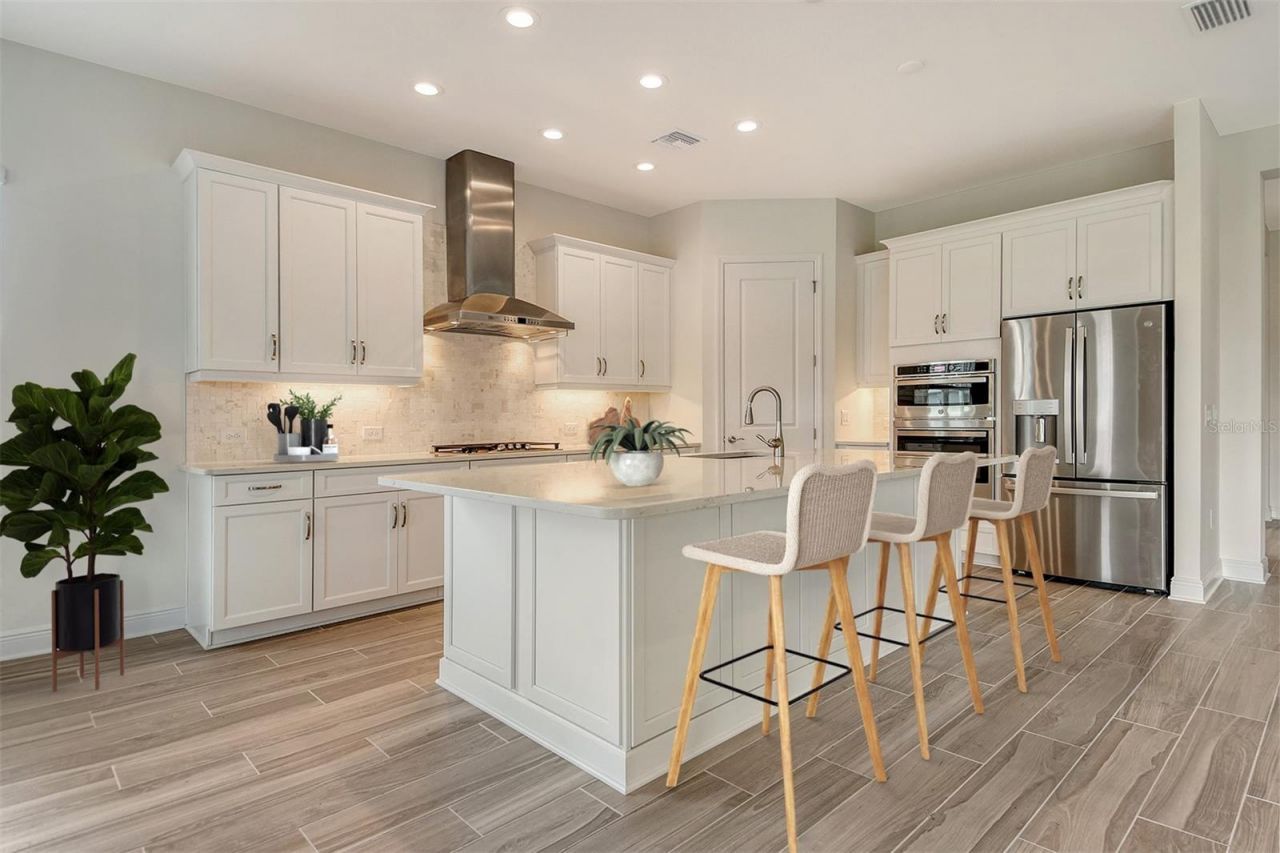 One or more photo(s) has been virtually staged. The Silver Sky Floorplan is perfect for a family, entertaining or extra room for guest's. The foyer/ gallery entry makes an elegant impression leading to an open great room/dining area with sliding glass doors and pool bath. This home includes a den with double swing doors, a large utility room, guest room with en suite, a luxurious master suite that has two walk in closets and two secondary bedrooms. The large covered lanai has a gas stub for grilling and dedicated circuit for refrigerator at outdoor kitchen. A two foot garage extension was added. This spacious new home design is located on a corner homesite with extra green space behind and beside the home providing additional common area on two sides of the home. Conveniently located near a gated entry to go for a bicycle ride, golf cart or take a stroll Downtown Wellen Park close by.