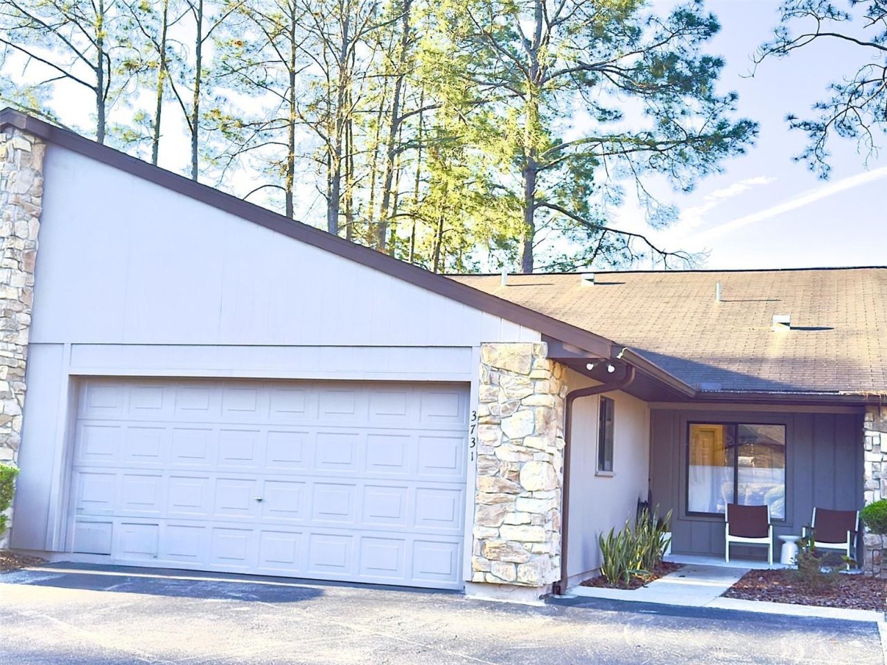 This one level attached unit with a full size 2 car garage is a rare find. Offering effortless, low-maintenance living. Ideally situated with direct access to UF and Shands via NW 13th St, offering a streamline access from the North side of campus. Less than 5 miles away. For those who value simplicity without compromise, this unit offers lock-and-leave and privacy with minimal shared exposure. Offering plenty of natural light with skylights, a private relaxing rear porch, built-in fireplace and a full size 2 car garage. This unit lives large with a minimum of 9' foot ceilings, a luxury primary bedroom, large primary bath with separate vanities and an expansive boutique style walk-in closet. Separate dining space and the kitchen bar provides casual seating for four. Extensively renovated with nearly new mechanicals and appliances throughout, including a recently installed full HVAC system and water heater (both under one year), along with a full suite of updated appliances including washer and dryer. Many other fine details to include USB-C plugs through out, cabinet storage and motion lighting in laundry, A Divine Closet systems in every closet and more. Offering a truly turnkey, worry-free ownership experience. Simply move in and enjoy. Mile Run offers exterior maintenance to include roof, a community pool, pickleball courts, tennis courts, sidewalks and walking trails.