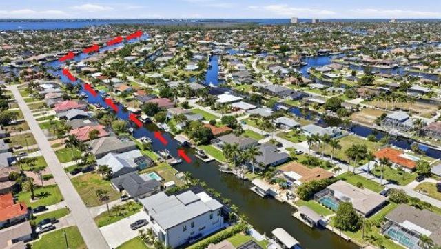 Welcome to your waterfront paradise nestled in the Bimini Basin Canal System of Southeast Cape Coral! This stunning Direct Sailboat Access Gulf Access pool home offers 3 bedrooms with 3 king sized beds, 2 bathrooms (one doubling as a pool bath), and 1,724 square feet of beautifully appointed interior living space. The home has NEVER FLOODED and features a NEW seawall, NEW dock, and a NEW 12,000 lb boat lift - everything you need to embrace the Florida boating lifestyle from day one. With no bridges and sailboat access, you're just a short boat ride away from the Caloosahatchee River, the open waters of the Gulf of America, and 50+ waterfront restaurants and beaches that Southwest Florida is famous for. Step inside to discover a bright, open interior with vaulted ceilings, abundant windows, and a skylight that fills the home with natural light. The kitchen is a standout, featuring granite countertops, a breakfast bar, a built-in desk, and a full suite of appliances including a refrigerator, stove, microwave, and dishwasher. The master bedroom boasts a tray ceiling, sliding door access to the lanai, and an en-suite bathroom with dual sinks and a tiled shower. Two additional bedrooms provide comfort and privacy, and a convenient pool bath is perfect for guests. Recent upgrades include a NEW air conditioner, NEW Hot water heater, NEW Masterpiece Rubberkoat pool decking, new carpeting in the living room and bedrooms, and a 2019 roof. The living room features pocket sliding doors that open to the covered lanai and screened pool, perfectly capturing the indoor-outdoor lifestyle SW Florida is known for. The property is finished with tasteful tropical landscaping, a 2-car attached garage, and a laundry room with A washer and dryer. This home is being sold furnished - Some items will be swapped out with other furnishings. Just bring your boat and your sunscreen! Don't miss your chance to experience waterfront living at its finest.