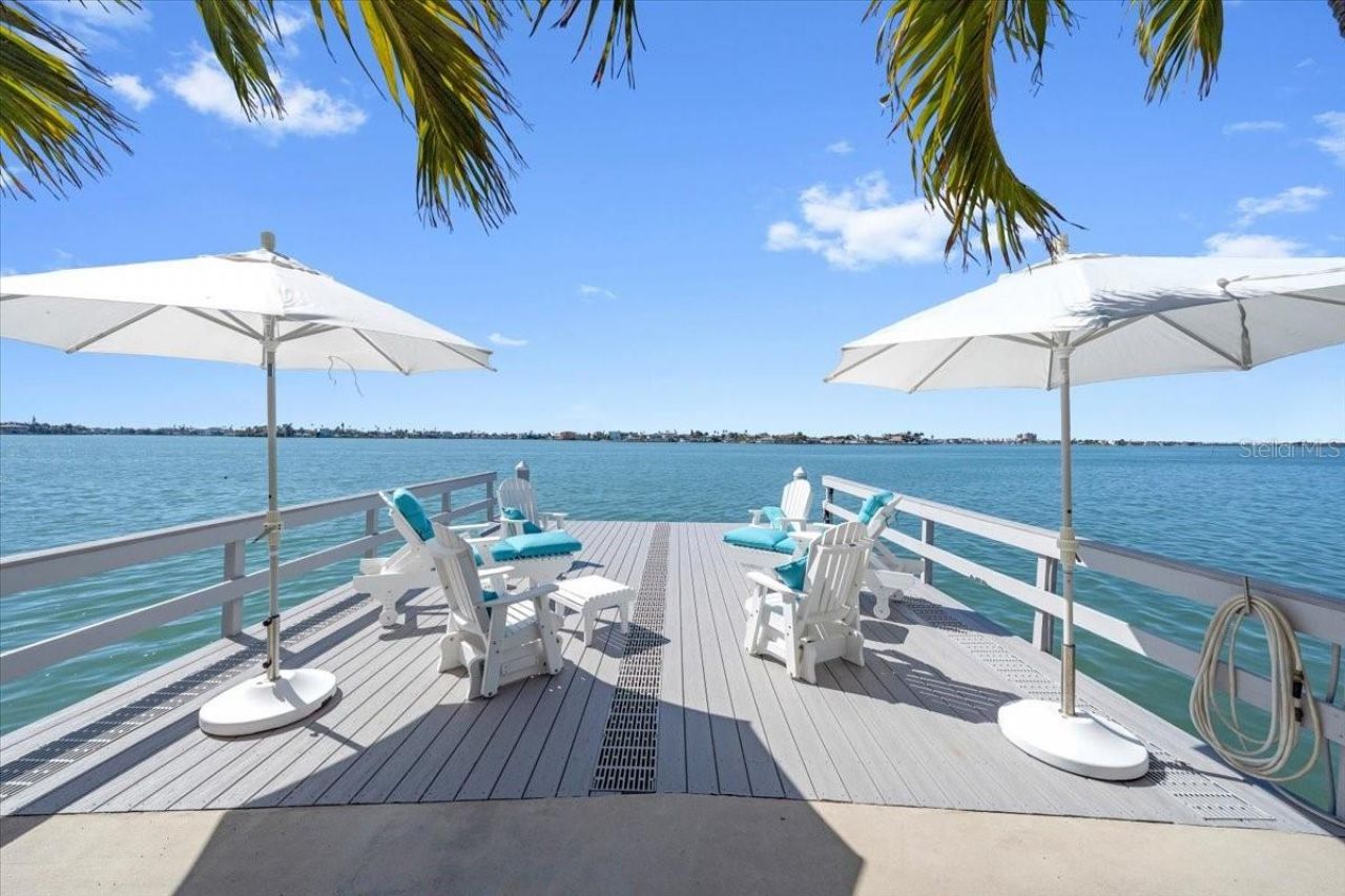 Dockside by day and breathtaking sunsets by night-this exceptional waterfront residence offers the very best of Florida living. Rarely available and completely reimagined, this fully remodeled 3-bedroom, 3-bathroom waterfront condo in the highly sought-after Boca Ciega Point showcases 55 feet of direct Intracoastal frontage with stunning open water views from nearly every room and unforgettable sunsets thanks to its rare due-west exposure. From the moment you arrive, the home welcomes you with a charming private courtyard entry-creating a warm and inviting first impression before stepping inside to a bright, beautifully updated interior. Every inch of this home has been thoughtfully renovated with careful attention to quality, function, and design. Oversized sliders frame speechless water views and fill the living spaces with natural light. A remodeled kitchen blends style and practicality with stainless appliances, custom cabinetry with pull-out drawers, and private access to the courtyard-perfect for effortless indoor-outdoor living. Elegant upgrades continue throughout the home with beautifully remodeled bathrooms, sophisticated 5-lite tempered frosted glass interior doors, custom light fixtures, and abundant storage solutions designed to maximize space and organization. The primary suite overlooks the Intracoastal, offering peaceful water views, a walk-in closet, and a beautifully updated ensuite bath with an oversized soaking tub with a shower attachment for added convenience. The oversized second bedroom comfortably accommodates two queen beds and features its own private ensuite bath and custom walk-in closet, while the third waterfront bedroom provides flexibility as a guest retreat, office, or additional living space. Designed to fully embrace Florida's indoor-outdoor lifestyle, the air-conditioned Florida room features custom roll-down shades and a built-in bar, creating the perfect setting for relaxing or entertaining while enjoying the waterfront scenery. Boating enthusiasts will appreciate the brand-new 25' x 20' private dock with swim platform and flow-through decking, along with a new seawall cap (2021)-making this a true boater's dream. The property also includes an oversized detached garage with additional storage, a rare and valuable feature for waterfront condo living. Located within Boca Ciega Point, one of West St. Petersburg's premier waterfront communities, residents enjoy gated security and resort-style amenities including a heated pool, fitness center, library, putting green, saunas, bocce ball, tennis courts, shuffleboard, boat club, and a vibrant calendar of social events.